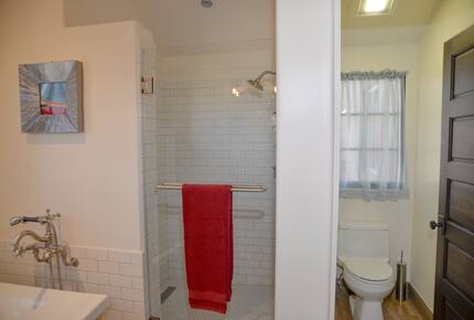 This charming home had beautiful amenities while keeping its historic look! Easy walk to the plaza and Canyon Road. The baths and kitchen were lovely appointed! Furniture was handsome and of historic style! A plush sectional couch would have created so much more comfort to seating and while lighting was updated, it was too dark to read! However these shortcomings did not dispel the magic of this home!”