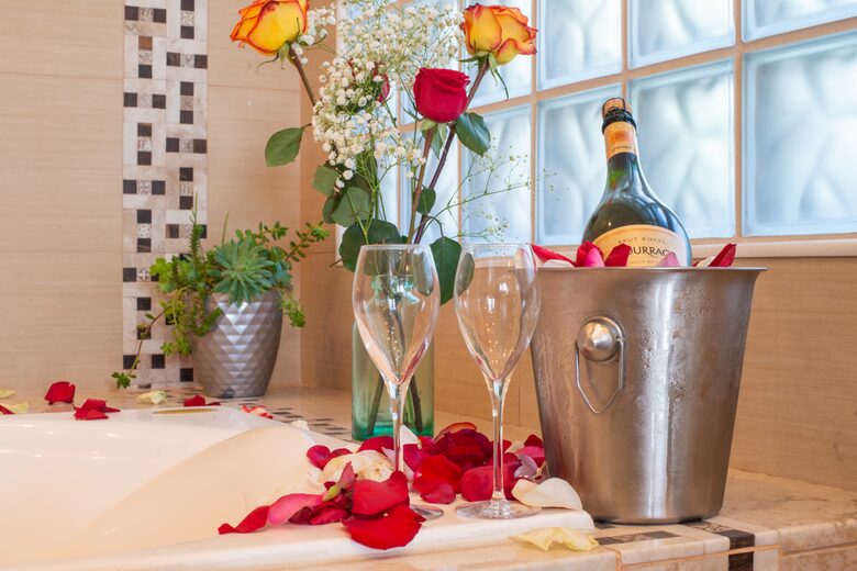 There are seven spacious bedrooms with more impeccable views of the mountains, clean, cozy linens, and modern yet homey décor. All include Queen-size beds, except for the en-suite Master that includes a King-size bed. Five of these bedrooms are en-suite. Each bathroom boasts a sleek and modern design with ample space and privacy. The Master bath has a roomy jacuzzi with his and her vanities and ample counter space.