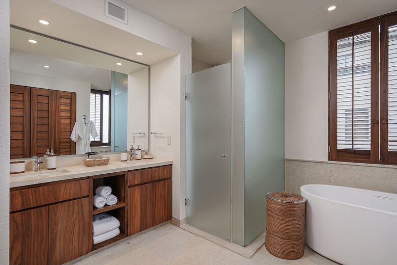 Guests of Casa Corpeteña have access to the Premier Golf Membership, which includes access to two Jack Nicklaus-designed golf courses, professional tennis and pickle courts, a full fitness center, and all of the private beach clubs (5 total) within the Punta Mita gates. Take the included six-person golf cart down wherever you need to go. The fact that there are miles of paved trails throughout the property for walking or biking is a great bonus.