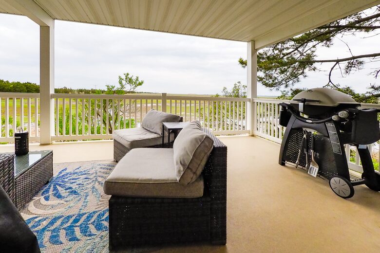 Nice place but patio is on marsh and you need mosquito spray to sit out. Nice location on the edge of town so more of a drive to shore if you bring things. Some mildew smell in unit but that may be typical near shore. Very helpful owners if anything is needed. ”