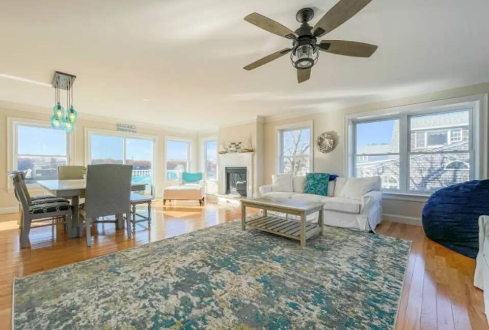 This home was PERFECT for us. It was my aunt, uncle, cousin and myself for this trip. We absolutely loved sitting on the back deck just watching the water, boats, and birds. It was so peaceful. The furniture on the deck was very comfortable. There was a grill available but we didn't use it. Out the front door and less than half a block down is the beach. I watched some of the most beautiful sunrises of my life from this beach. Just a couple tiny blocks away was Huot's which my family all agreed had the best lobster rolls of anywhere we went to between Portland and Ogunquit. The general store was about a block away and the Pistachio muffins were amazing. The furniture inside was so comfortable for us. Everyone could sit comfortably in the living room and everyone slept well in their rooms. The master bathroom is HUGE and my aunt kept saying how much she loved the shower. The other 1.5 bathrooms were sufficient and clean. I slept in the middle bedroom which I absolutely loved. The bed was right next to two large windows. I opened the windows wide up and fell asleep to the sounds of ducks quacking and fish jumping and woke up to the beauty of the sunrise on the boats. It was perfection. The third bedroom was well appointed with bunk beds for maximum sleeping occupancy. The kitchen table was large which was very nice for when I needed to do a little remote working. The kitchen had everything we could possibly need during our stay. The owner Kathleen could not have been more wonderful and communicative. I absolutely would love the opportunity to stay here again. My family agrees. This vacation was perfection. ”