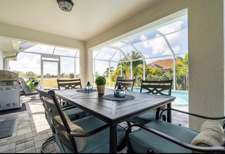 Mermaid Tales has a fresh, coastal vibe with an open floor plan and wonderful screened in pool and deck area. The weather was ideal during our weeklong stay, so all meals were enjoyed on the back patio. The owner was quick to respond to any questions and issues, which we greatly appreciated. The kitchen was well stocked with the essentials. This property is in north Cape Coral and the closest grocery store is approximately 20 minutes away. That was not a problem for us as we were out and about everyday touring, so made a grocery stop on the way home. Depending on traffic, getting to Fort Meyers takes about 30-45 minutes. Naples is an hour away. I highly recommend visiting both. This home is in a quiet, safe neighborhood in a growing area of north Cape Coral. There are beach cruisers in the garage and pool floats and beach chairs. The closest public beach is Fort Meyers which we visited one day. The owners take pride in the maintenance of their home, which is always refreshing when staying in a Thirdhome. ”