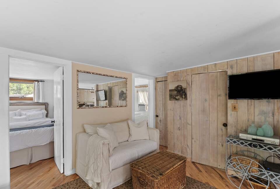 Living Room has a Loveseat that pulls out a Twin Bed.