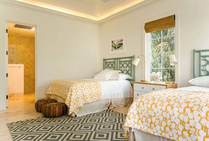 We thoroughly enjoyed our stay at Villa Frangipani on St Kitts. The home is true to the pictures, very nicely done, great for 4 couples or family with kids. The house is well equipped. We did 2 different boat/snorkel trips, golfed twice, and often ate in. St Kitts is a beautiful unspoiled island with minimal resorts. We went to Hyatt Place resort one day which was lovely and also spent a day at Four Seasons Nevis. The ferry to get around is only a few minutes from the home at Reggae Beach. You will need a car. Be sure to verify the Pavillion which has many amenities and fitness center are open if you hope to use them (they were under renovations during our stay). We highly recommend St Kitts and Villa Frangipani if you enjoy a down low, unspoiled island not overly built. ”