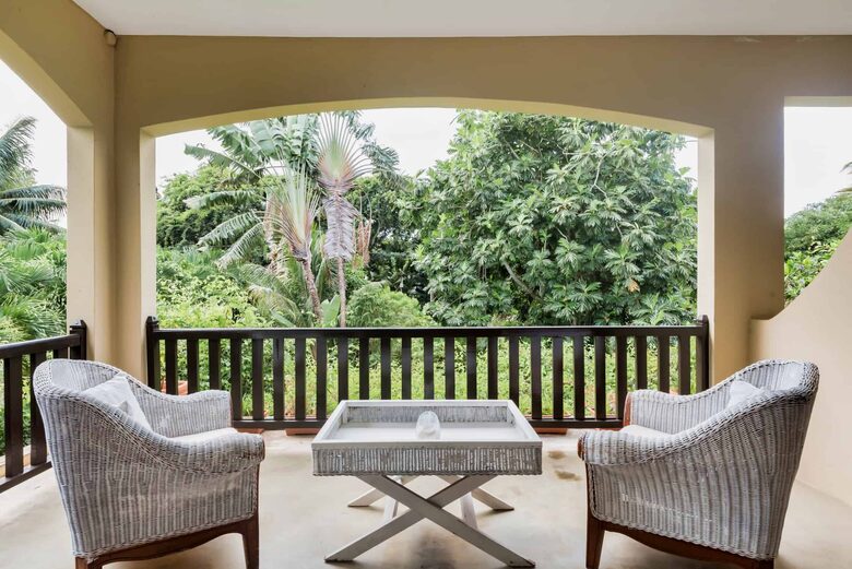 Villa Vakoa has recently been renovated and designed in such a way to specifically accommodate for holiday makers and seasoned travelers alike. The three bedrooms are situated on the first level, two of which face the front garden and have access to private balconies overlooking the pool and trees. The third bedroom faces the rear of the property which overlooks the surrounding vegetation. The living and dining area downstairs are spacious and comfortable, offering first class quality and comfort.The shady, manicured garden and pool offer great privacy and respite from the summer sun and is great for kids to play safely.